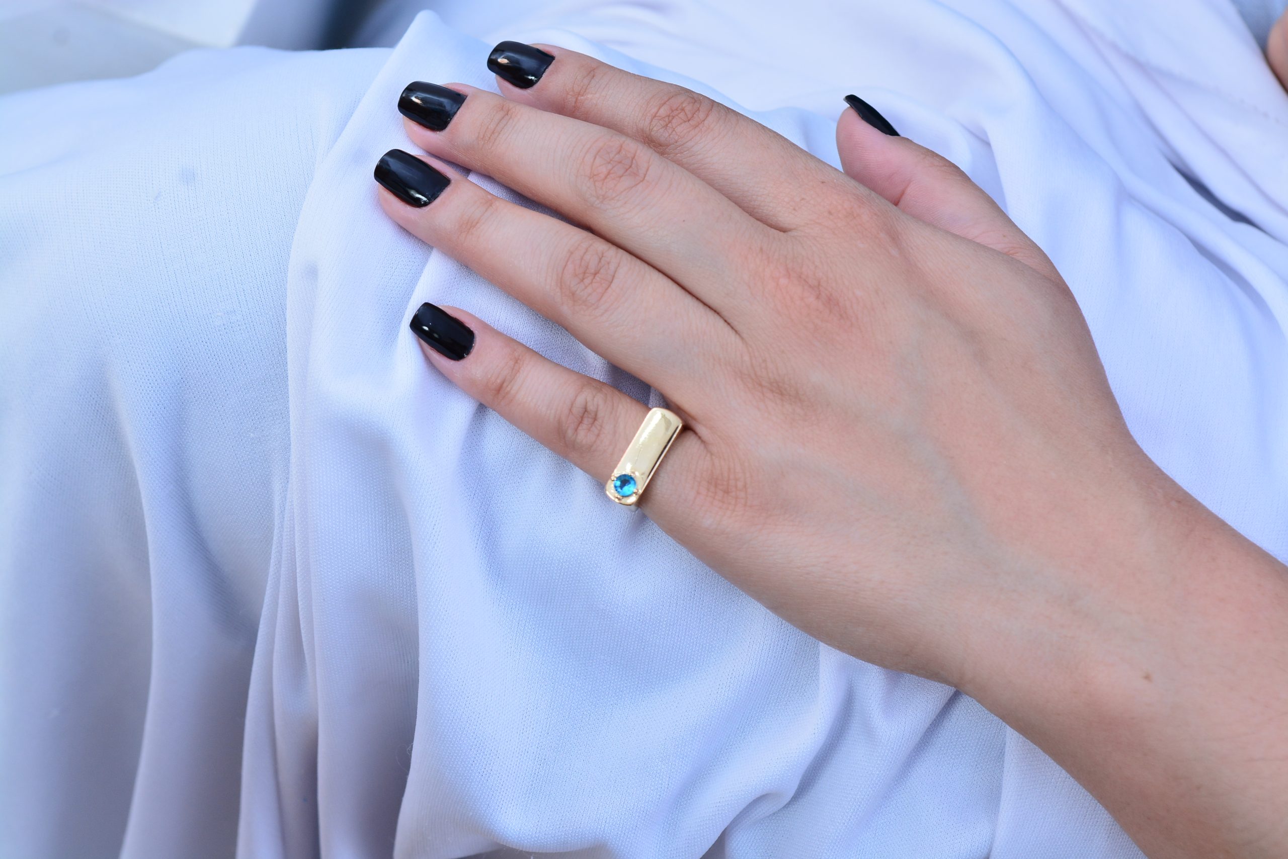 Anel Banho Dourado Mindinho Cravado Zircônia Azul