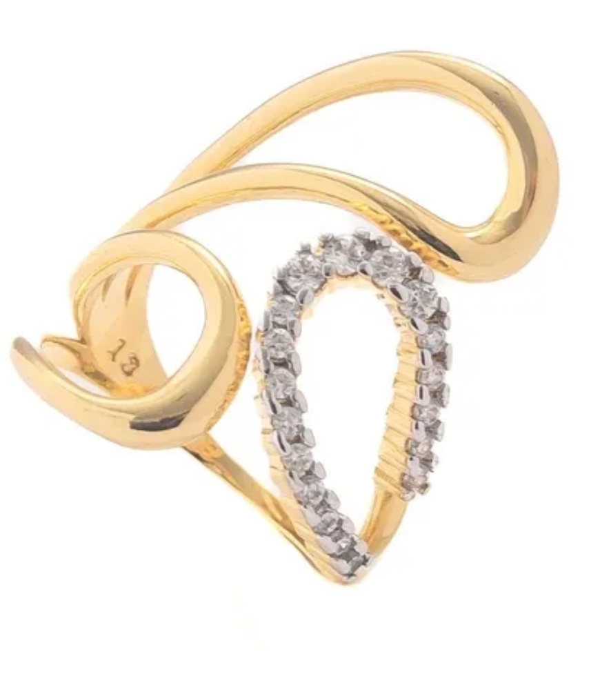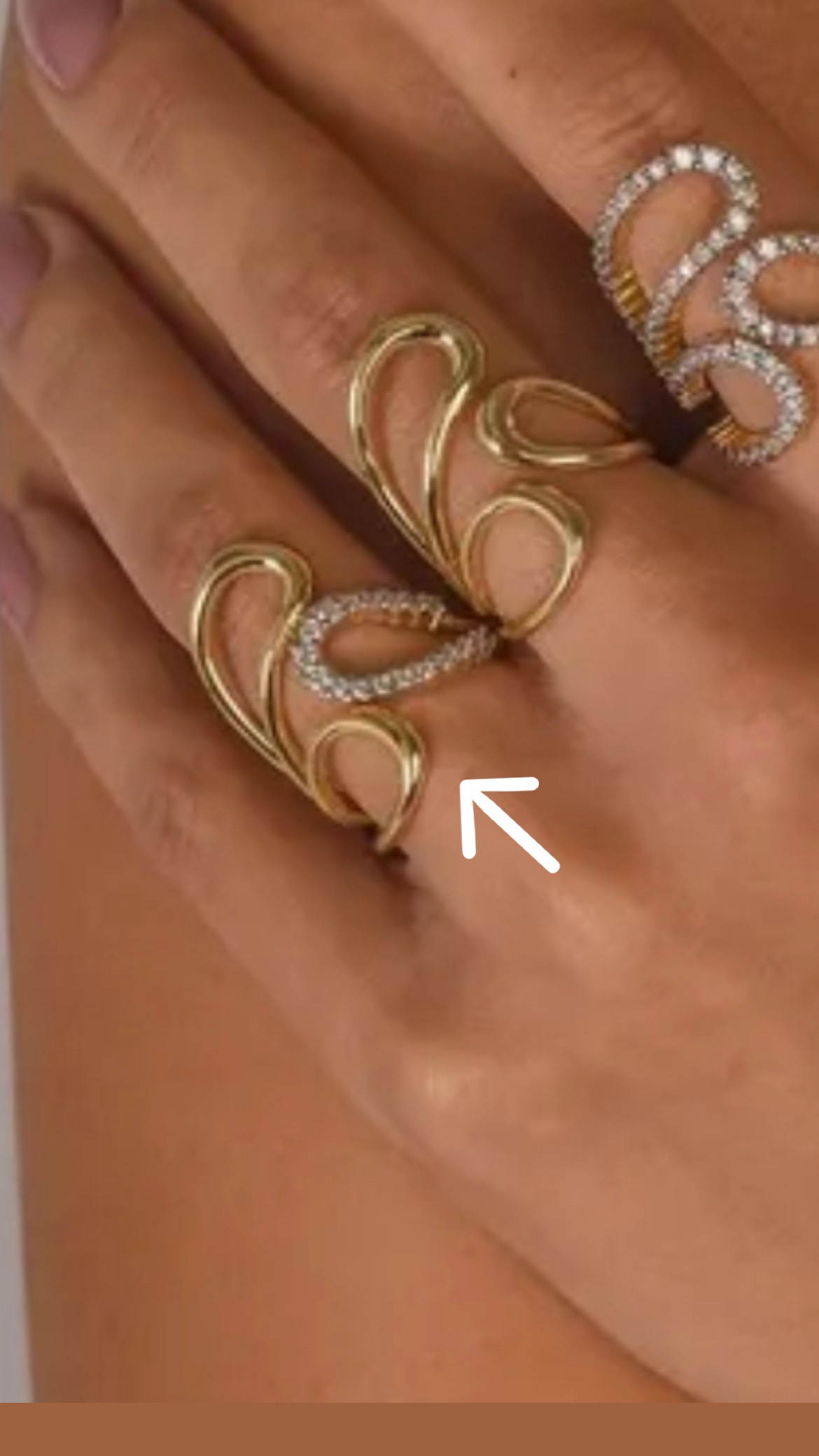 Anel Regulável Banho Ouro 18k – Uma Volta Cravada em Zircônias Transparentes e Duas Voltas Lisas