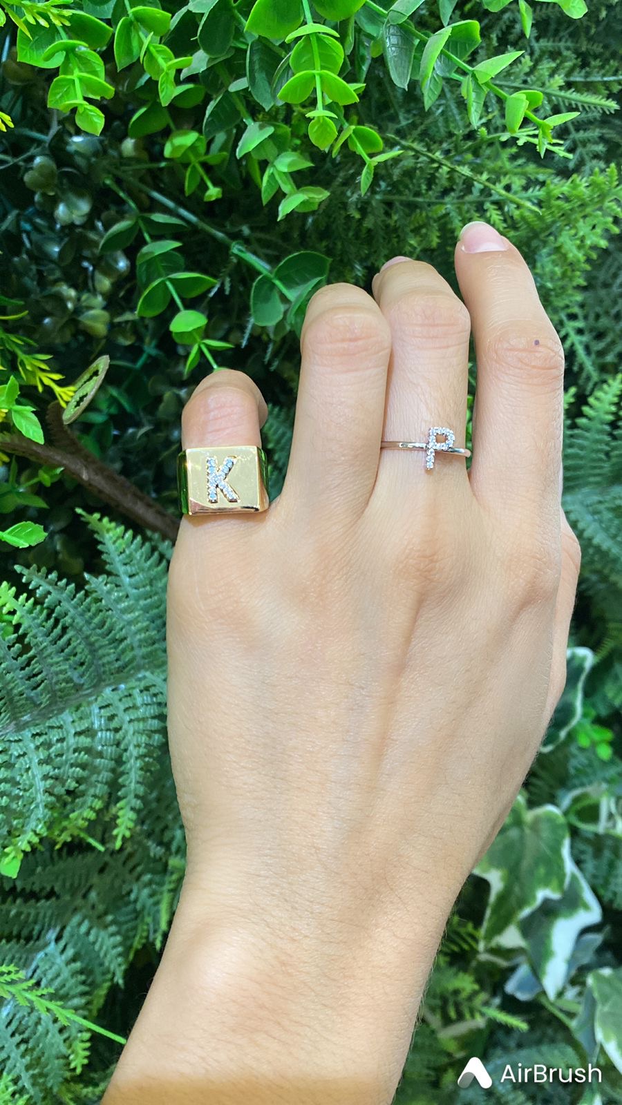 Anel Regulável Banho Ródio Prata – Fio Liso e Letra Cravada Micro Zircônias Transparentes