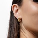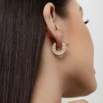 Brinco Argola Banho Dourado – Cravação Pavê Nas Laterais Em Zircônias Transparentes e Ponto de Luz