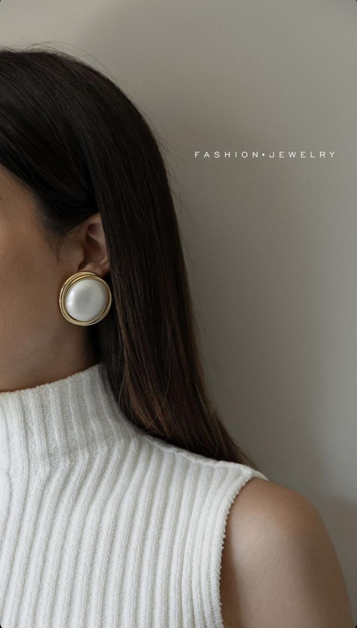 Brinco Banho Dourado – Pérola Resinada G com Aros Dourados Feitos por Eletroformação