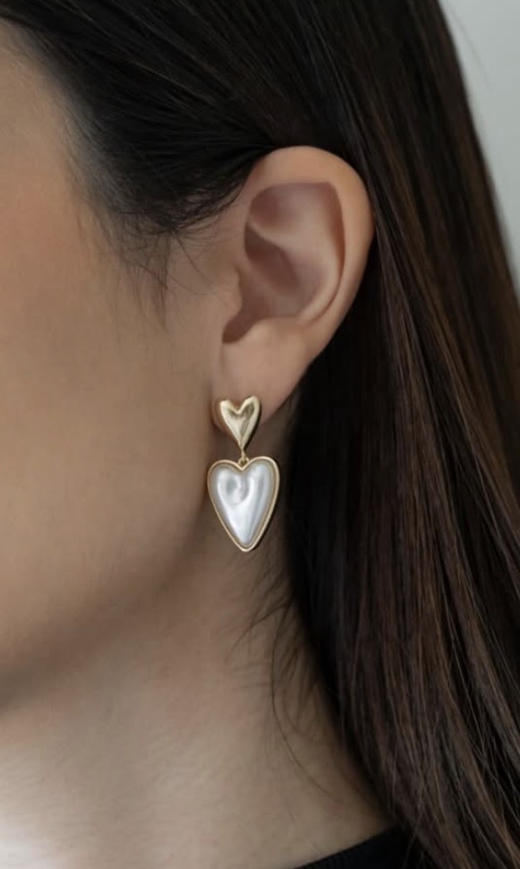 Brinco Banho Ouro 18k – Coração Liso e Coração Madrepérola