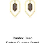 Brinco Banho Ouro 18k – Pedra Central Quartzo Fumê