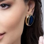 Brinco Banho Ouro 18k – Pedra Obsidiana Negra Perolada