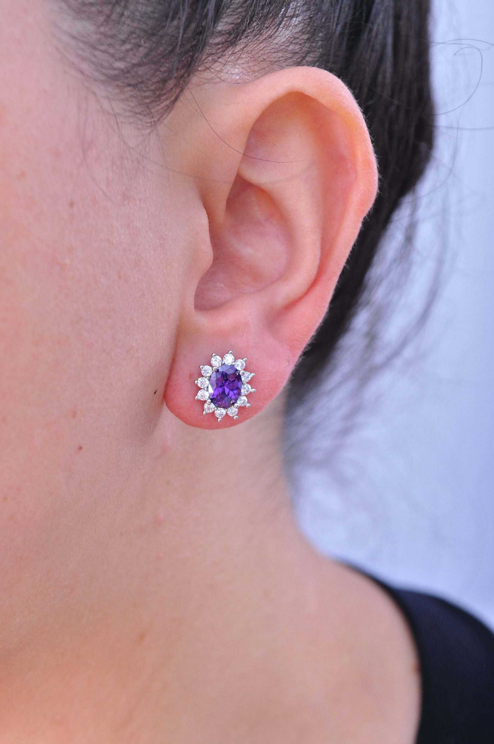 Brinco Banho Ródio – Zircônia Tanzanita Central Cravado em Zircônias Transparentes
