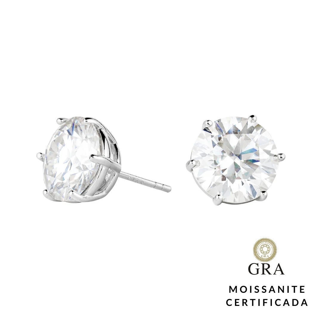 Brinco Prata 925 - Pedra Moissanite 9.5MM 3.5 CARAT