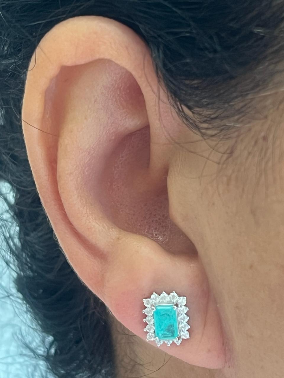 Brinco Prata 925 – Turmalina Fusion Quadrada – Cravada Micro Zircônias Transparentes