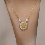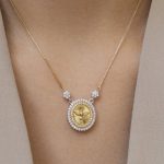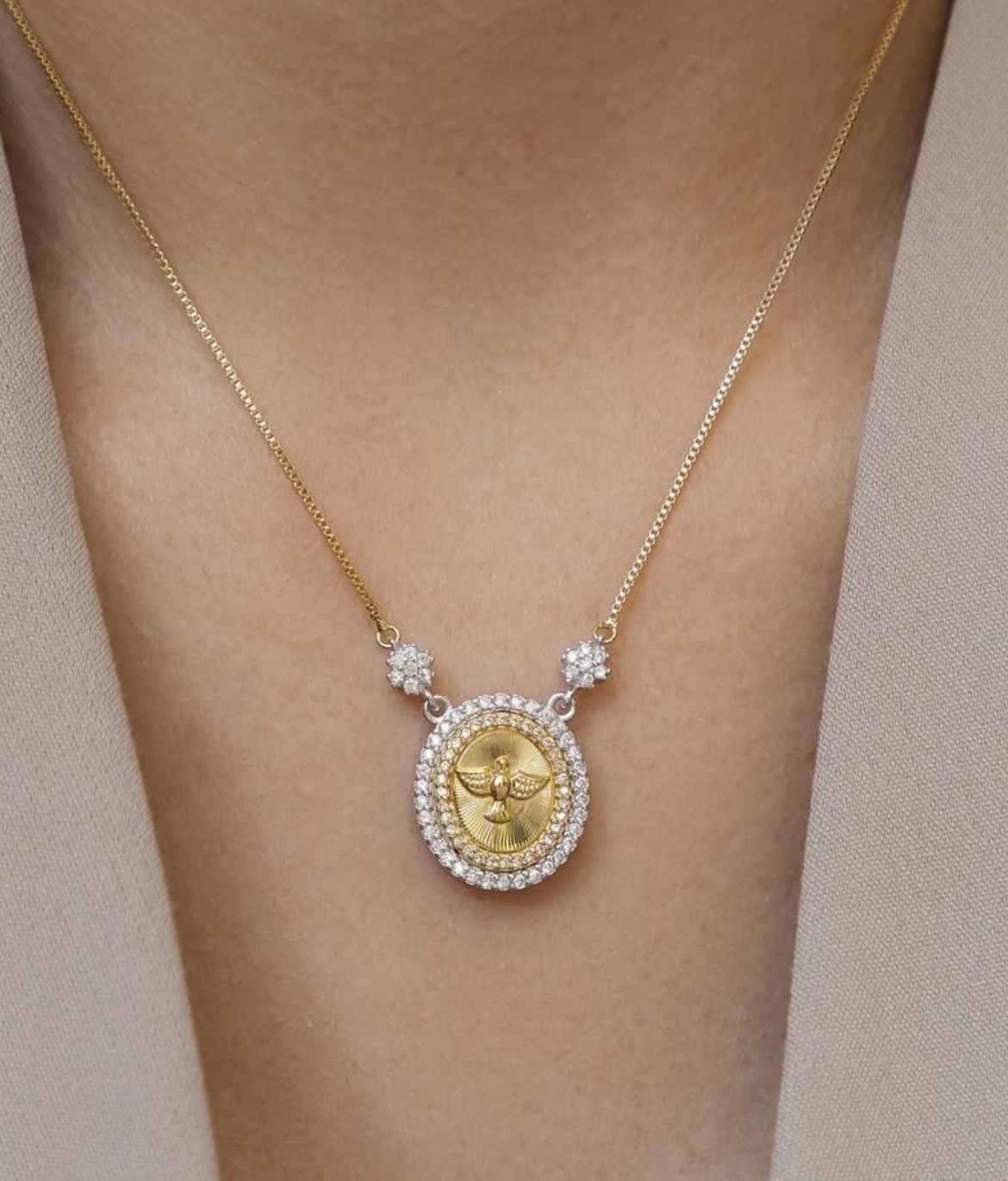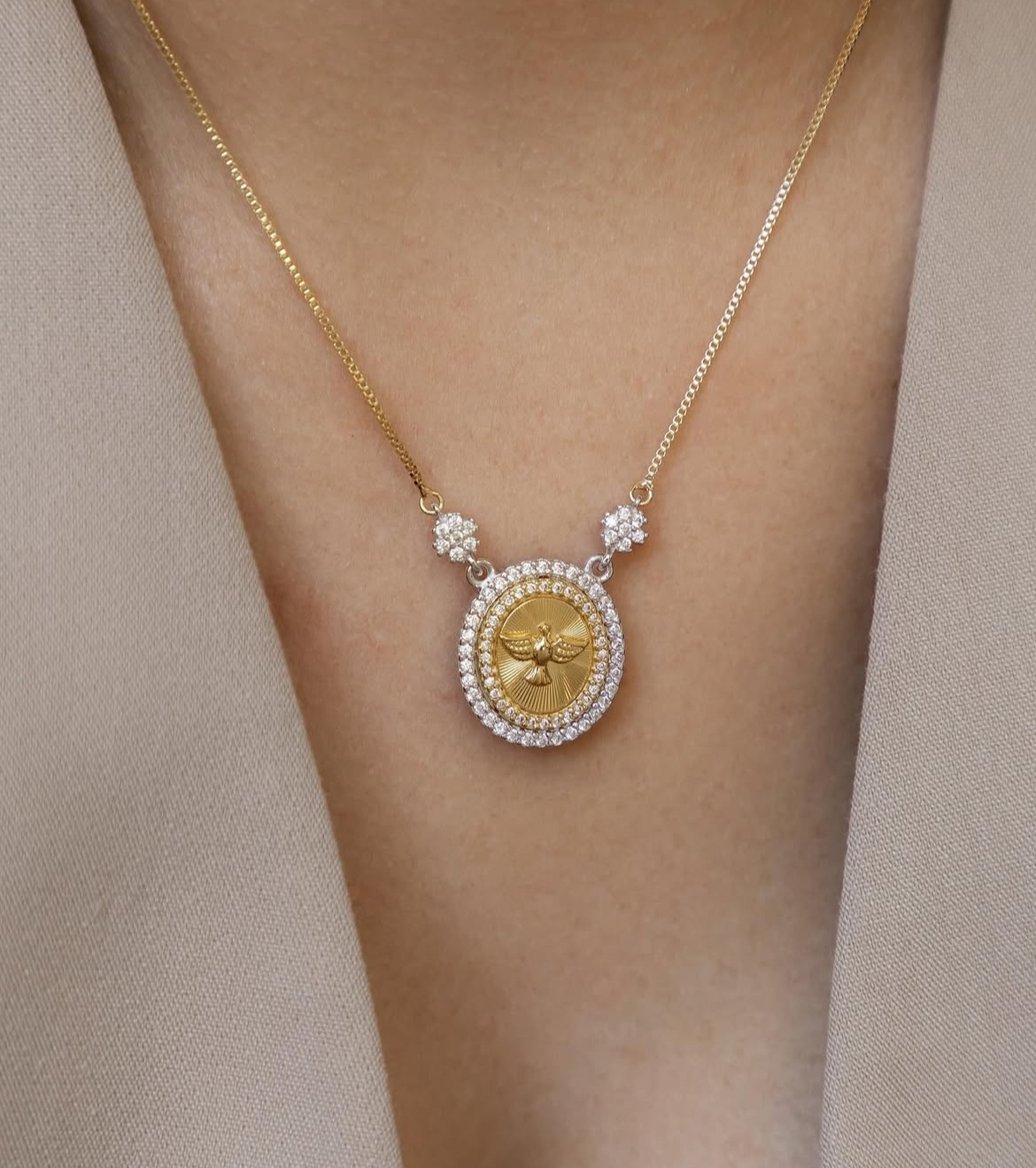 Colar Banho dourado – Medalha Divino Espírito Santo Cravada em Micro Zircônias Transparentes