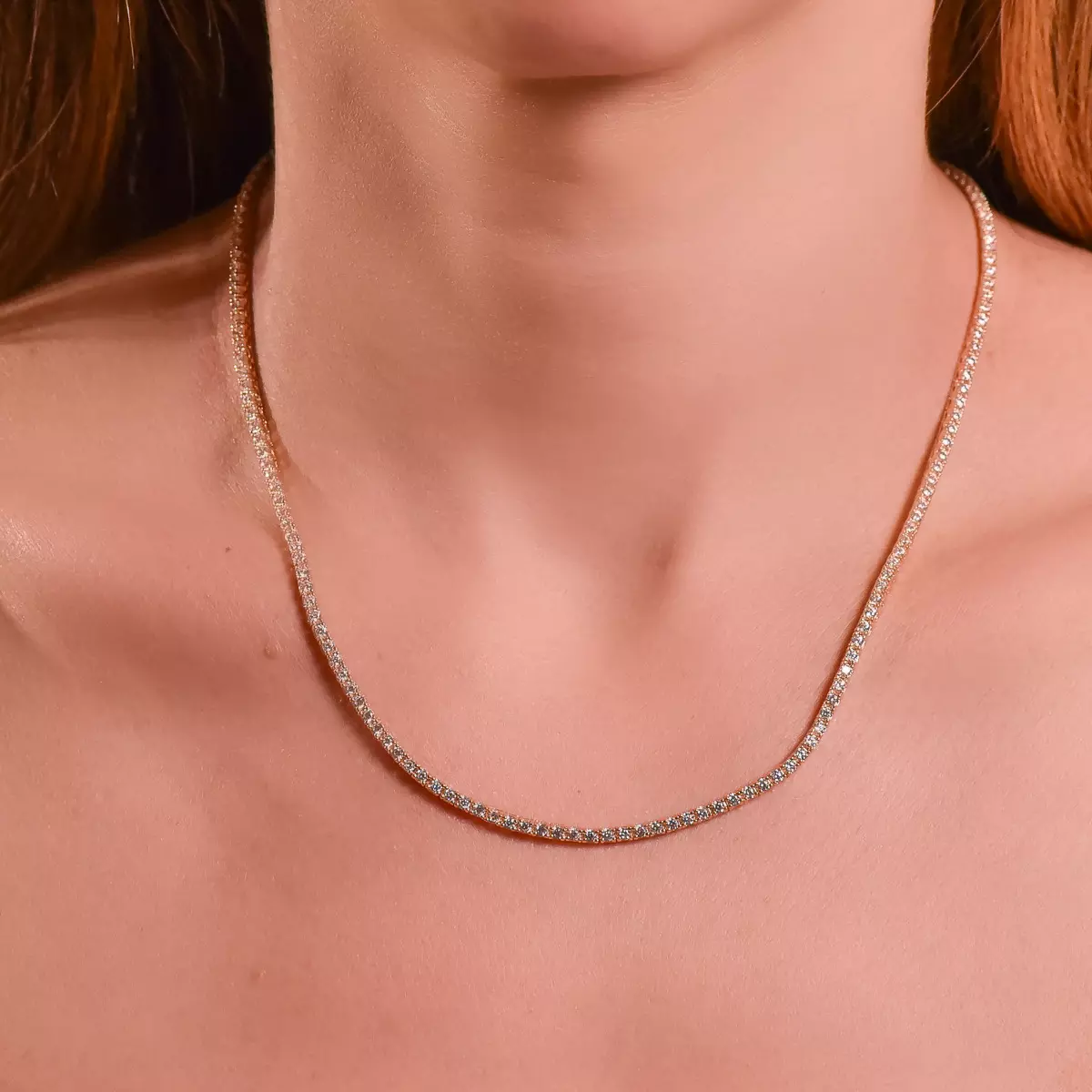 Colar Banho Ouro 18k - Colar Riviera 42 CM Zircônia 3 MM
