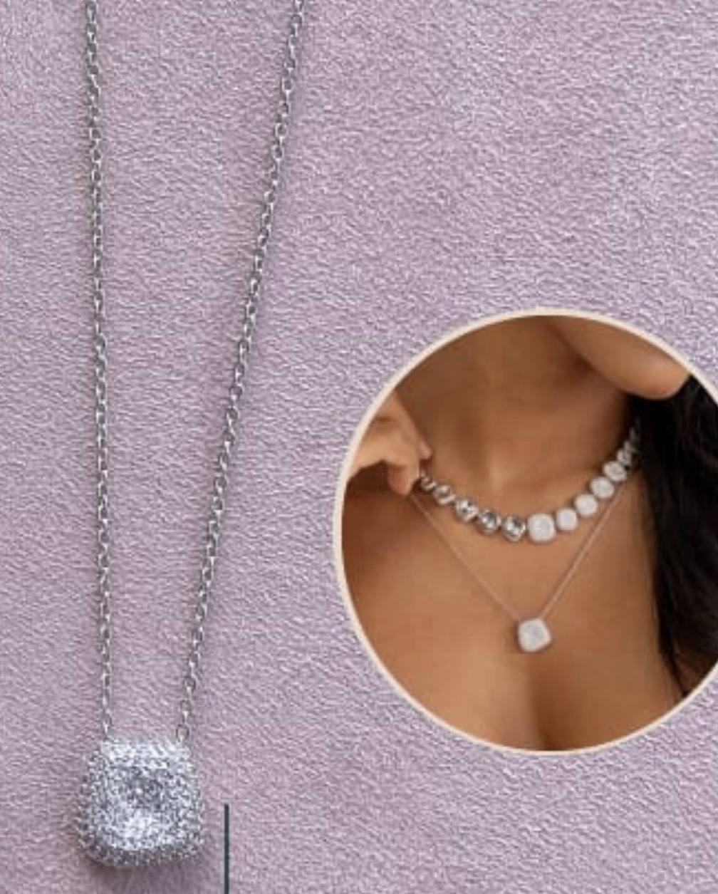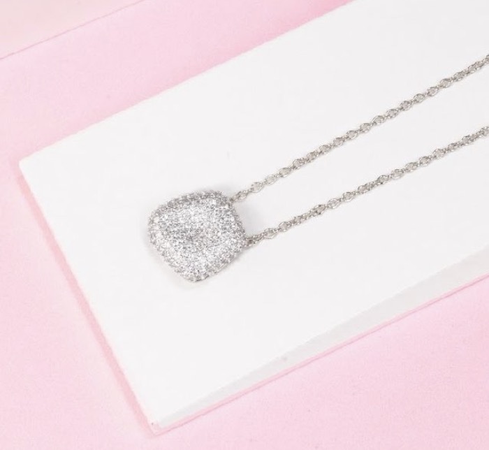 Colar Banho Ródio – Pingente Cravado em Micro Zircônias Transparentes 60 CM