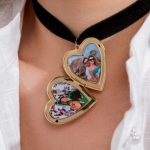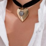 Colar Fita Cetim – Pingente Relicário Coração Dourado Liso e Coração Cravado