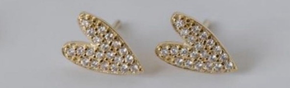 Conjunto Brinco e Colar Banho Dourado – Corações Cravados em Micro Zircônias Transparentes