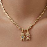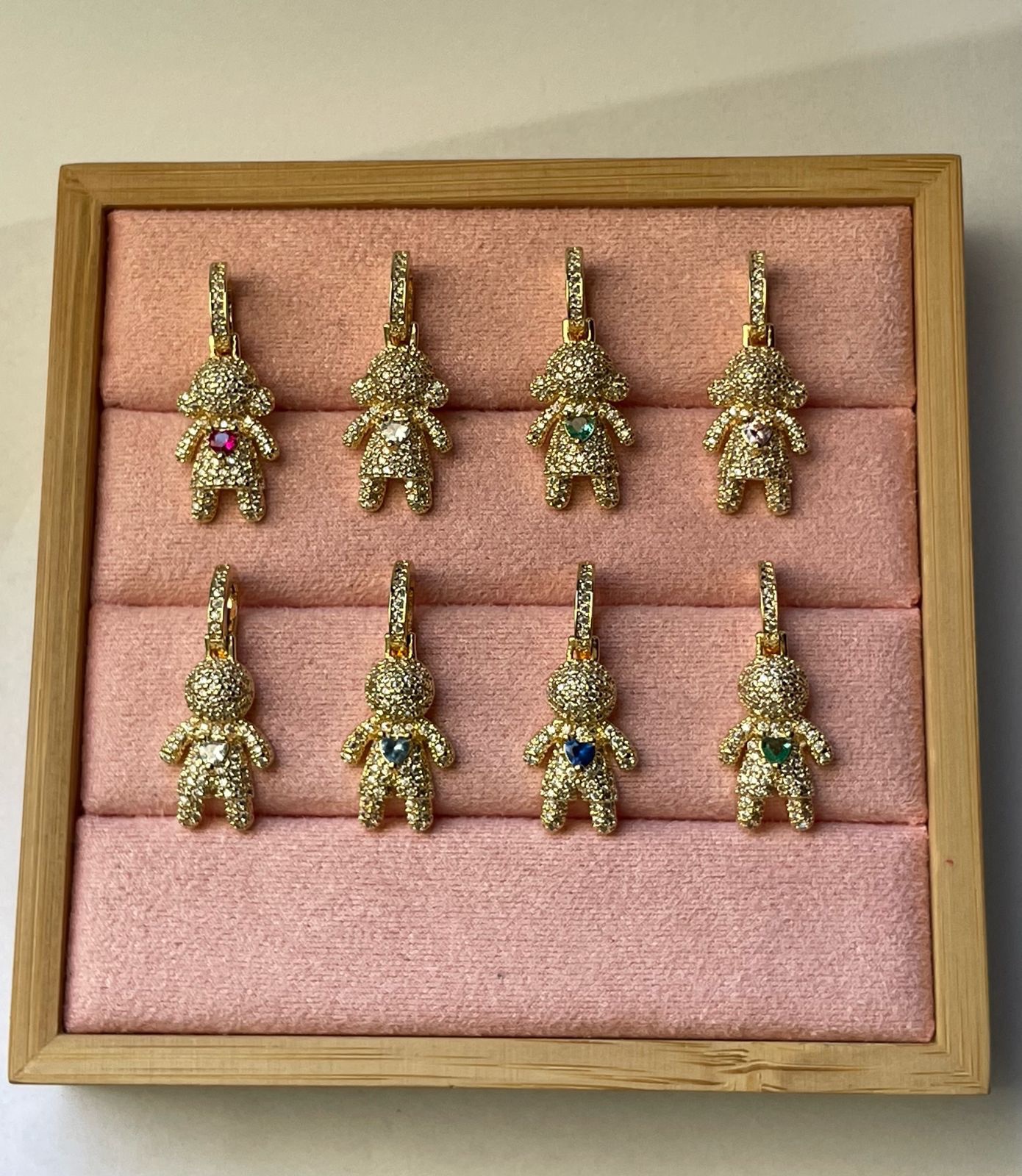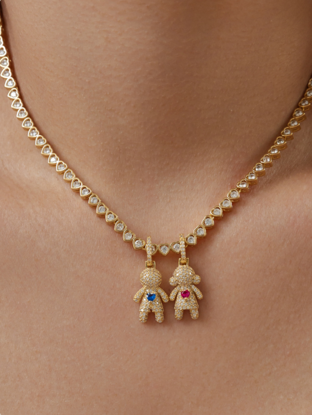 Pingente Banho Dourado – Menino Cravado em Micro Zircônias Transparentes e Zircônia Coração Central Colorida