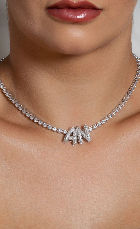 Pingente Banho Ródio – Letra Para Riviera Cravada Micro Zircônias Transparentes