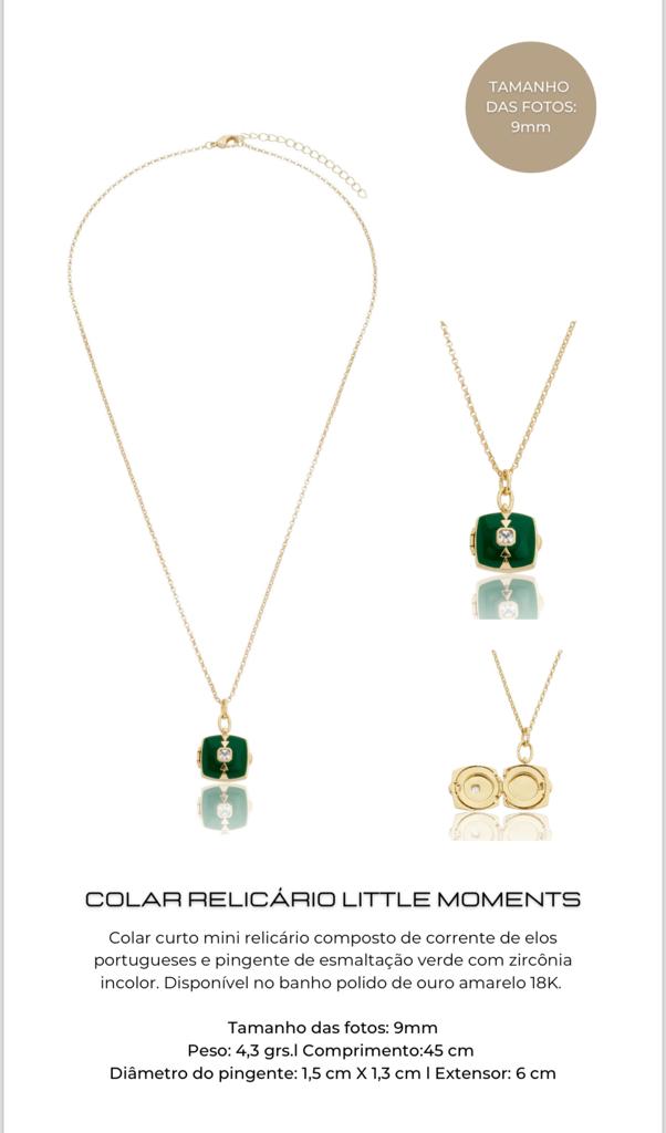 Relicário Folheado 18K – Pingente Verde Pequeno